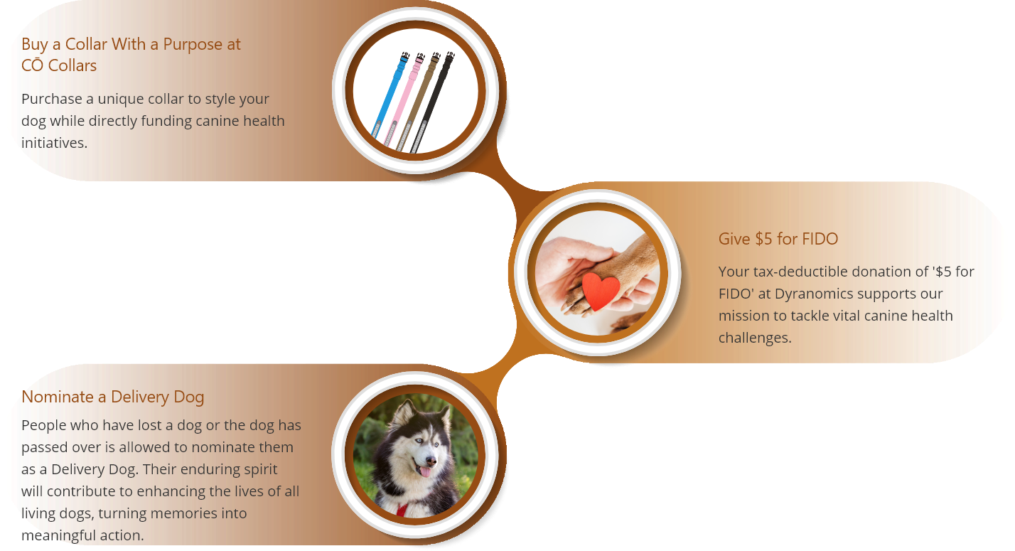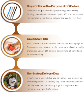 Feature a dog whose memory inspired a donation of $500 or more to the $5 for FIDO campaign at Dyranomics, honoring the lasting impact they continue to have.